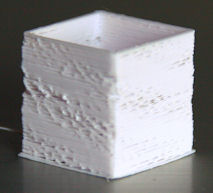 (2013/11/18) そこそこ良い設定のようである。 もう少し、速度を落とした方が良いかもしれない。 しかし、造形面の造形品質はけして良くない。装置の機械的精度が低い為によるものと推測する。 (何か5層間隔で目減りしている。ランダム定義が影響か?) CubeXと比較すると良い |