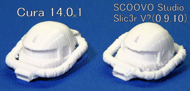 Cura 14.01での造形データ生成での造形サンプルである。まだ、設定が分らない点があるので、こんな状況ではある。