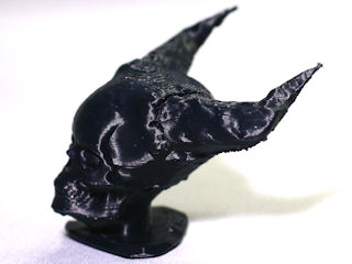 | 造形時間1時間27分、8.6g オーバーハングの部分だけど、角もそうだけど後頭部の付け根あたりもダメでしたね。溶融温度230℃では、まだ高すぎのようです。 でも、ABSだとオーバーハングに余裕があって本当に造形し易いんだよな〜。でも、PLA専用機なんだよねC170って。まあ、C170でこれだけ出来るのだから、X9シリーズでも大丈夫でしょう。X4はPLA専用機だから推奨はしない。 |