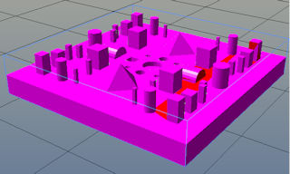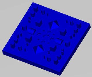 1mm角未満の造形データが失われるため、四角錘の最上部が失われる事や寝せた半円柱の最上部が失われるなど、造形ロスが見られる。