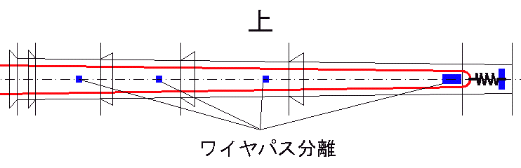 尾のマッサージや分解修理のときは、ワイヤパス分離用のセバレータ位置に注意しましょう。