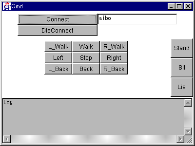 切断は、"DisConnect"ボタンを押すことでおこなわれ、再び、"Connect"ボタンに変わり、AIBO側は、LEDの点滅をクリアする。