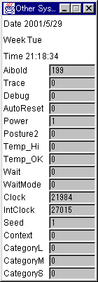 スレッドとして、入力ストリームを操作する処理を加えることで、コマンドに対するリターン情報を獲得できるので、各種センサーの情報や、システム変数等を問い合わせ、パネル上に表示させる機能が実現できる。これにより、よりAIBOを制御している感覚が味わえるであろう。