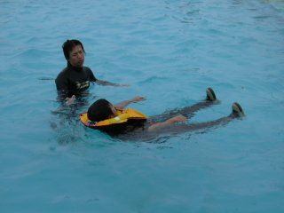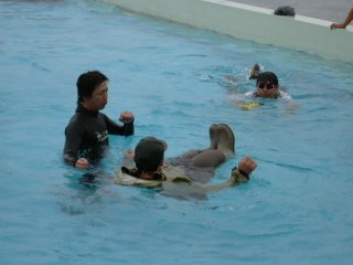 | レクチャーを受けながら | 残り30分再度入水 |
