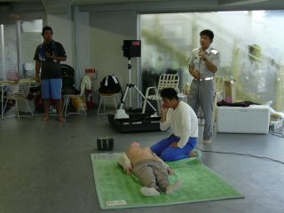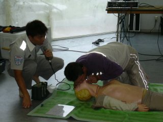 | 救急救命士による講習会 | 救急車の正しい呼び方講習中 |