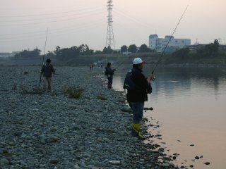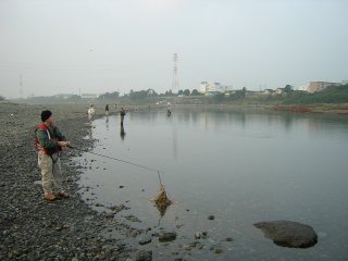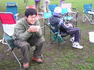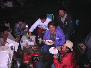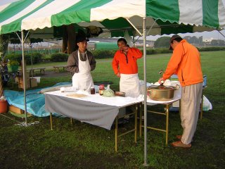 | 早朝の神川橋下流 | 朝食準備開始 |