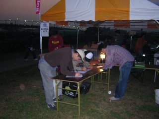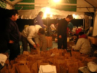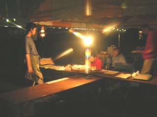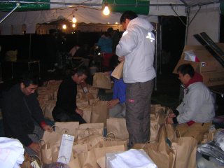 | まもなく受付終了 | 深夜開始される協賛品の仕分 |
