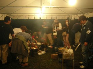 | 帰着報告&ゴミ収集 | テント内の掲示を閲覧 |