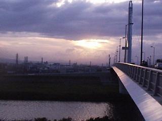 銀河大橋 下流へ向けて 寒川と平塚を結ぶ橋です。夜間ライトアップされ綺麗です。 平塚側から下流へ向けて撮影 川の対岸は目九尻川の合流ポイントとなっております。 中洲から撮影 撮影日 2000年3月20日 |