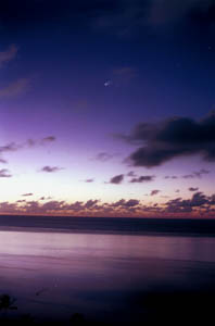 夕暮れに沈みゆくヘールボップ彗星。1997年。