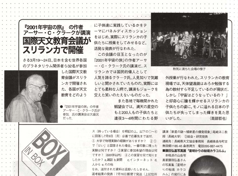 ・天文ガイド 2001年6月号 〜弊社イラストレーター 高部哲也がSFの巨匠、アーサー.C.クラークを取材した様子を執筆しています。 |