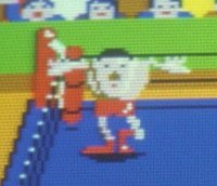 表情のうすい男の顔とはうらはらに、大男(BABU)は勢い込んで攻勢にでた。大男は糸のような足でいきなり得意技の十六文カウンターキックを放った。 プロレスゲームの一面はやさしい。しかし目的は、クリアすること、すなわち勝利ではない。コンピュータ相手にいかに「見せる」試合をすることができるか? それが問題なのである。