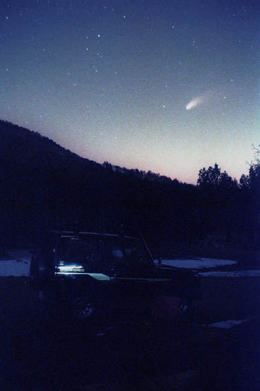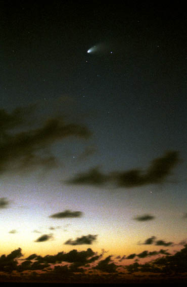夕暮れに沈みゆくヘールボップ彗星。1997年。