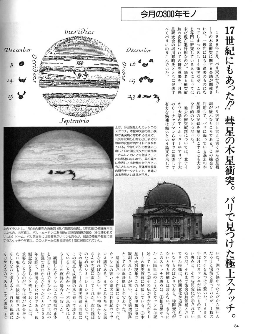 ・スカイウォッチャー 1997年4月号 〜弊社代表取締役 田部一志が自ら執筆した、17世紀の彗星の木星衝突に関する記録を発見した顛末記です。 |