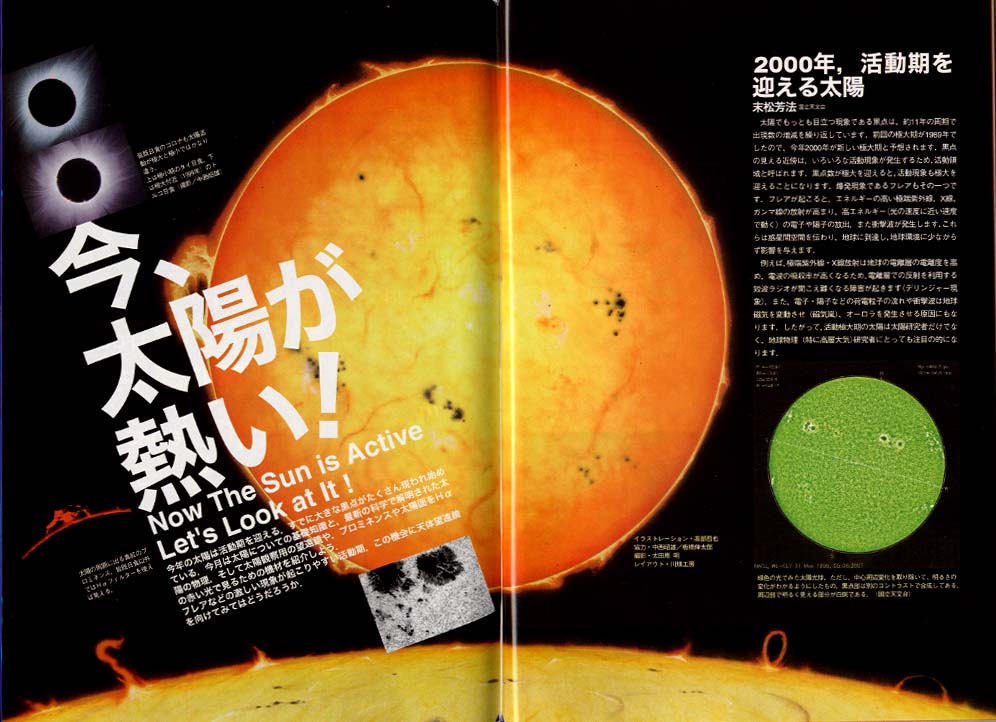 ・天文ガイド 2000年2月号 〜太陽特集に燃え上がる太陽、太陽説明図のイラストが掲載されました。 |