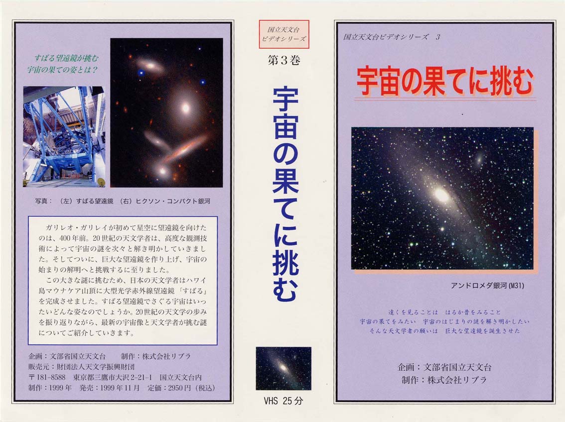 ・国立天文台広報ビデオ「宇宙の果てにいどむ」 〜リブラ製作の国立天文台広報ビデオです。天文学振興財団で、販売しています。 |