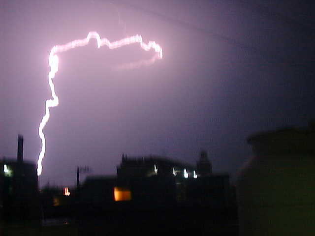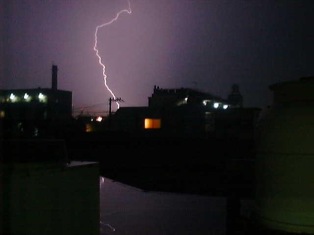 [稲妻がはっきり確認できる。どこに落ちたんだろーって感じ。]