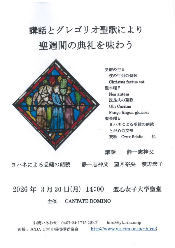 原則 月2,3,回 木曜 13:30〜15:30 聖心女子大学聖堂 ご連絡ください