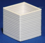 (2013/11/18) そこそこ良い設定のようである。 もう少し、速度を落とした方が良いかもしれない。 しかし、造形面の造形品質はけして良くない。装置の機械的精度が低い為によるものと推測する。 (何か5層間隔で目減りしている。ランダム定義が影響か?) CubeXと比較すると良い |