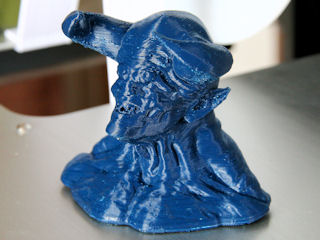 | 造形時間1時間27分、8.6g オーバーハングの部分だけど、角もそうだけど後頭部の付け根あたりもダメでしたね。溶融温度230℃では、まだ高すぎのようです。 でも、ABSだとオーバーハングに余裕があって本当に造形し易いんだよな〜。でも、PLA専用機なんだよねC170って。まあ、C170でこれだけ出来るのだから、X9シリーズでも大丈夫でしょう。X4はPLA専用機だから推奨はしない。 |