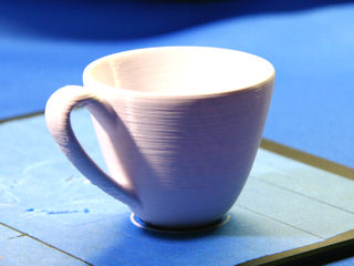 | 初めての0.025mm(25μ)ピッチの造形としては良く出来た方だが、溶融温度が高めである事や吐出し速度が速いため、表面が荒く膨らみが出てふくよかに造形されている。 溶融温度や吐出し速度の設定としては余裕がある範囲なので、0.025mmピッチの造形は実現可能な範囲と考える。 造形ピッチに関しては、上下の移動ネジのピッチが細かい為(上下の移動速度が遅い欠点があるが)、制御に余裕がある様で、精度上の問題や樹脂の溶融最低温度の限界、吐出し能力等の限界などから、造形ピッチの限界は0.01mm(10μ)位だと想像する。 安定して造形出来る範囲は、0.02mm(20μ)位だと思われる。 最近のパーソナルなFDM方式の最小造形ピッチが25μを謳うものが出始めているが、本装置でも実現可能な範囲と考える。 |