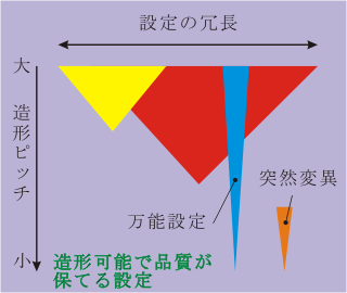 但し、造形ピッチが細かくなるだけで造形品質が向上するものと勘違いしてはならない。