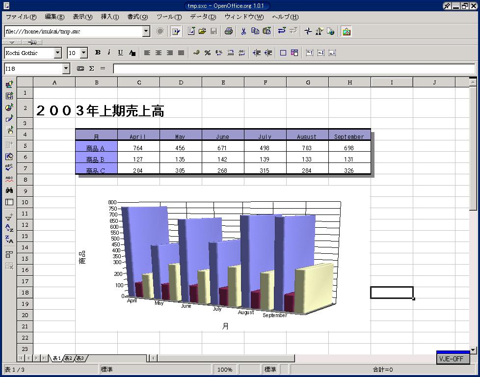 | 説明 | 本格的なオフィススイートです。もともとStar Divisionが作っていたものですが、この会社をSun