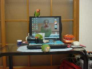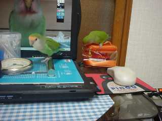 2羽のいない間に毛繕い