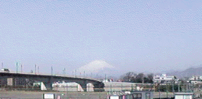 【上の写真は相模川下流の堤防から撮影した春の富士山。'96年3月16日10時頃のもの】(Japanese)
