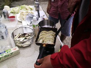 | 恒例のNAOさんギョーザ作成中 | NAOさんギョーザの焼き上がり |