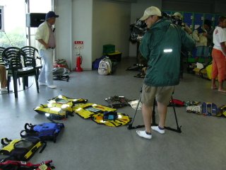 | 会場の大磯ロングビーチ | 各種並べられたフローティングベスト |