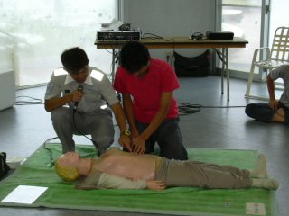 | 救急救命士による講習会 | 救急車の正しい呼び方講習中 |
