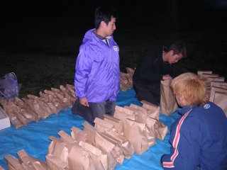 | スタッフは深夜に協賛品の仕分け | こうしてお楽しみセットは作られます |