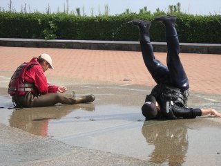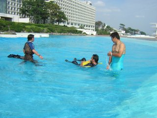 | 無事に膨張してくれました | 浅瀬での実験 |