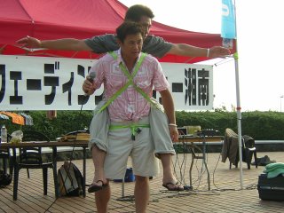 | 背負い側は両手空くので体力も消耗しない | 横山代表による閉会のごいあさつ |