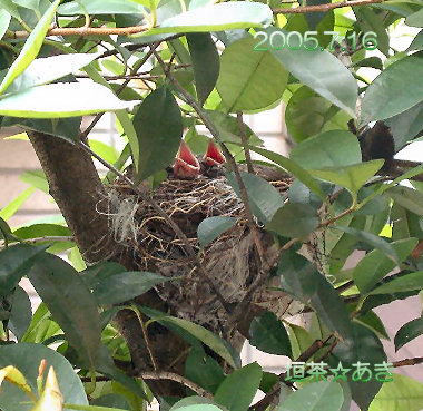 必死にクチバシを天に向けて大きく開け、親の運ぶ餌だけを待ちわびている様子が愛おしくて、「野鳥は驚かせたら親が寄りつかなくなるかもしれないね。親が餌を運ばなければ雛が・・・可哀相だから、そっとしておこうねっ!」と、旦さんと話してたんです。