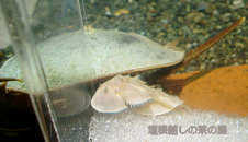 | 熱々ラーメンに汗をたっぷりかいて、駅前のバス停から「おたる水族館」へ向かいました。 だんだん雲行きが怪しくなってきたなぁ〜と車窓を眺めていると、バスの窓ガラスに水滴が・・・雨です。 住宅街を抜け、小樽水族館が見えてきて、いざ降りようとした瞬間、ザバーーーーを降ってきました。 晴雨兼用の日傘は、アッという間にびっしょびっしょ。 そそくさと水族館へ入る私たちと入れ違いに、見終わった大勢の帰り客たちは、突然の大雨にてんやわんや。 人間の騒ぎなんてなんのその、そんな感じの優雅な亀が私たちを出迎えてくれました。(左の写真はカブトガニ親子です。) イルカショーを観たり、館内を一周。 大雨は止みそうになかったので、ホテルの送迎車をお願いして移動することにしました。 |