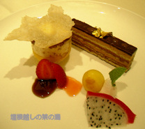 | 本日の夕食 : お箸で食べられるフランス料理(写真はデザート) | ![]() |