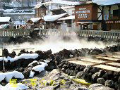 * 上野 発 新特急草津号 ↓ 長野原草津口 着 ↓ バス移動 荷物をロッカーにあずけて湯畑へ向かう。 見渡せば雪はあるものの、道路は歩きやすい。 日陰は凍結してピカピカ光ってる。 氷柱発見! \(◎0◎)/ ![]() 途中、温泉たまごも発見! (+q+)美味しそう・食べたぁ〜い でっもぉ、お昼食べたばかり…後ろ髪を引かれつつ見るだけで断念。 湯畑は硫黄の匂いが充満してる。 足湯に入ってる人も多く、のんびりムード満点。しばし散策。 方々から、温泉まんじゅう試食の呼び声が… 気づけば掌に湯気をたてた物が乗っかていた。(*^0^)v 遠慮なくいただく♪ ホカホカ温かくて美味しい♪ ![]() 西の河原公園へ向かう 鬼の茶釜は、かなり熱かった。 (ちなみに、摂氏50度以上あるようです) 今回の旅の目的は「休息」だったので、早々と宿へ。 陽のあるうちの雪見風呂と洒落ることにしました。 そして、待ちに待った夕飯♪ ↓の碗物は、豆のすり流し(空豆かグリンピースだと思います?) ![]()