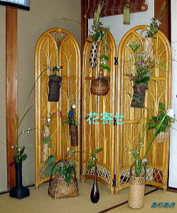 床の間、床柱、書院、屏風などに置かれた花入れに花々をいけます。秋は特に草花をたくさんいけますが、その際、1、2、3、5、7種類というように、偶数は2のみで、あとは奇数の数だけいけるようです。