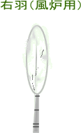 | 羽ぼうき(釜、炉縁などを掃く羽) | ![]() 向かって右側が広いものが右羽 全体の大きさは炉より小さい |