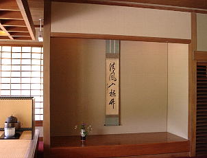 床の間に飾られる掛け物、花、などです。