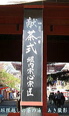 今年は花々の開花が早く、桜は早くも散り始めていましたが、春の芽吹きがそこここに感じられる献茶式日和となりました。 私(筆者)にとっては、献茶式は乃木神社に続いて2度目の体験となります。僅かながら雰囲気に慣れて来たとは言え、まだまだ遠慮がち。(笑) 受付に寄ってから堀内宗心宗匠の献茶式まで少々時間がありましたので、先に茶席を廻ることにしました。(茶席は5席ありました) |
