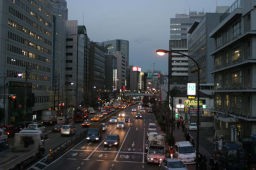 田町駅近くから東京駅方面の写真です。 スタートが遅かったので夕暮れです。 |